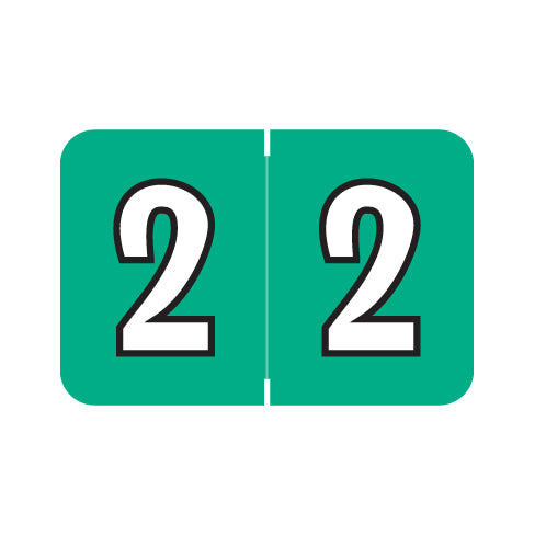Colwell Jewel Tone numeric labels have a wrap-around jade background with a white number outlined in black. The number will be visible on each side of the folder when applied. Each label is 1"H x 1-1/2"W before folding.