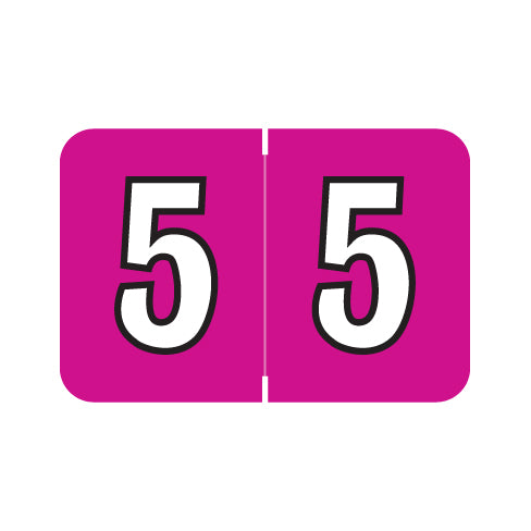 Colwell Jewel Tone numeric labels have a wrap-around fuchsia background with a white number outlined in black. The number will be visible on each side of the folder when applied. Each label is 1"H x 1-1/2"W before folding.