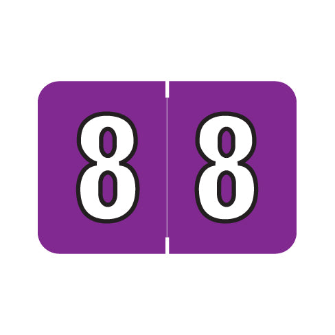 Colwell Jewel Tone numeric labels have a wrap-around grape background with a white number outlined in black. The number will be visible on each side of the folder when applied. Each label is 1"H x 1-1/2"W before folding.