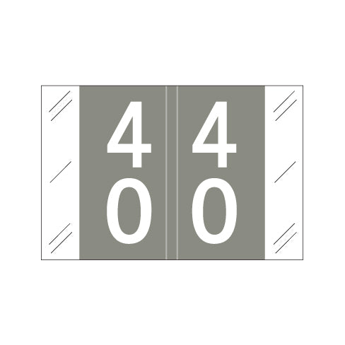 Col'R'Tab 11200 40-49 labels feature a wrap-around gray background with white numbers and clear side skirts. The number will be visible on each side of the folder when applied. Each label is 1"H x 1-1/2"W before folding.