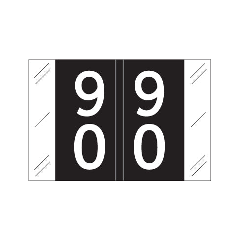 Col'R'Tab 11200 90-99 labels feature a wrap-around black background with white numbers and clear side skirts. The number will be visible on each side of the folder when applied. Each label is 1"H x 1-1/2"W before folding.