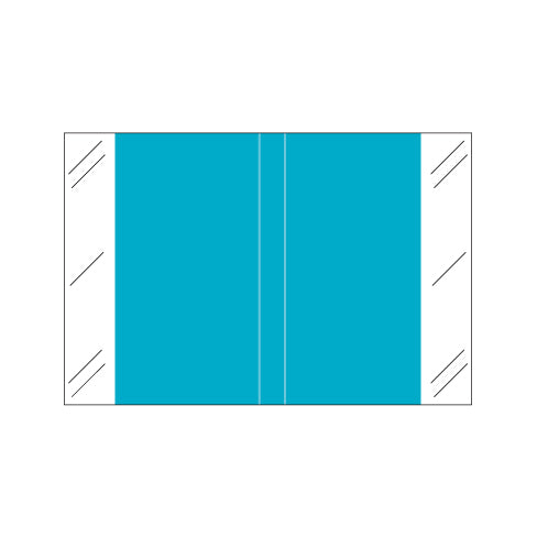Tabbies solid light blue labels feature a wrap-around solid color in the center and clear skirts on the sides. Label size is 1-1/2" W x 1" H before folding.