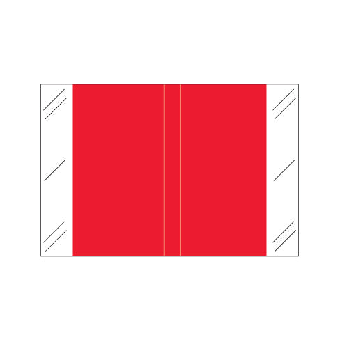 Tabbies solid red labels feature a wrap-around solid color in the center and clear skirts on the sides. Label size is 1-1/2" W x 1" H before folding.