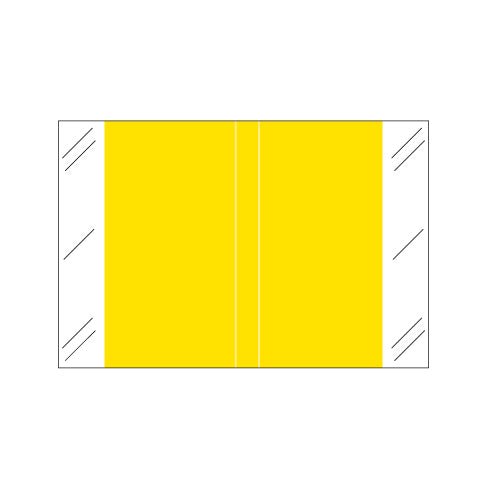 Tabbies solid yellow labels feature a wrap-around solid color in the center and clear skirts on the sides. Label size is 1-1/2" W x 1" H before folding.