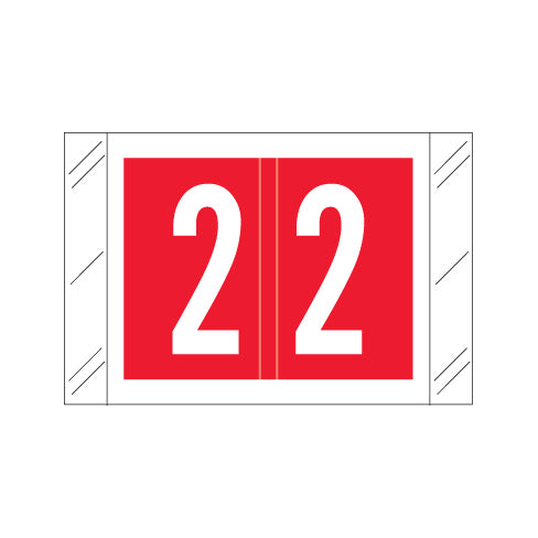 The Col'R'Tab 11000 labels feature a wrap-around red background with a white number and clear side skirts. The number will be visible on each side of the folder when applied. Each label is 1"H x 1-1/2"W before folding.