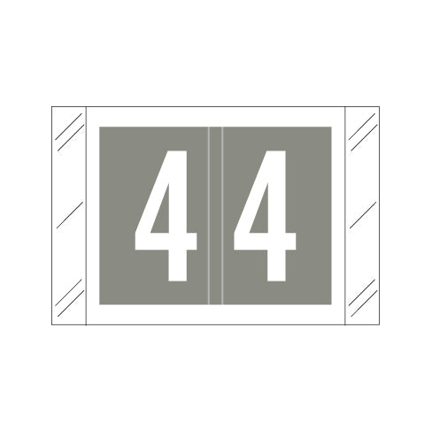 The Col'R'Tab 11000 labels feature a wrap-around gray background with a white number and clear side skirts. The number will be visible on each side of the folder when applied. Each label is 1"H x 1-1/2"W before folding.