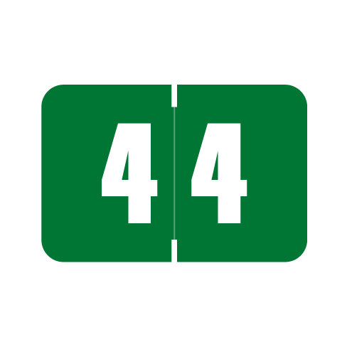 Digi Color DCNM numeric labels feature a wrap-around green background and a white number. The number will be visible on each side of the folder when applied. Each label is 1" H X 1-1/2" W before folding.