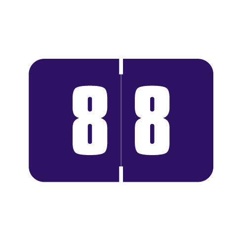 Digi Color DCNM numeric labels feature a wrap-around purple background and a white number. The number will be visible on each side of the folder when applied. Each label is 1" H X 1-1/2" W before folding.