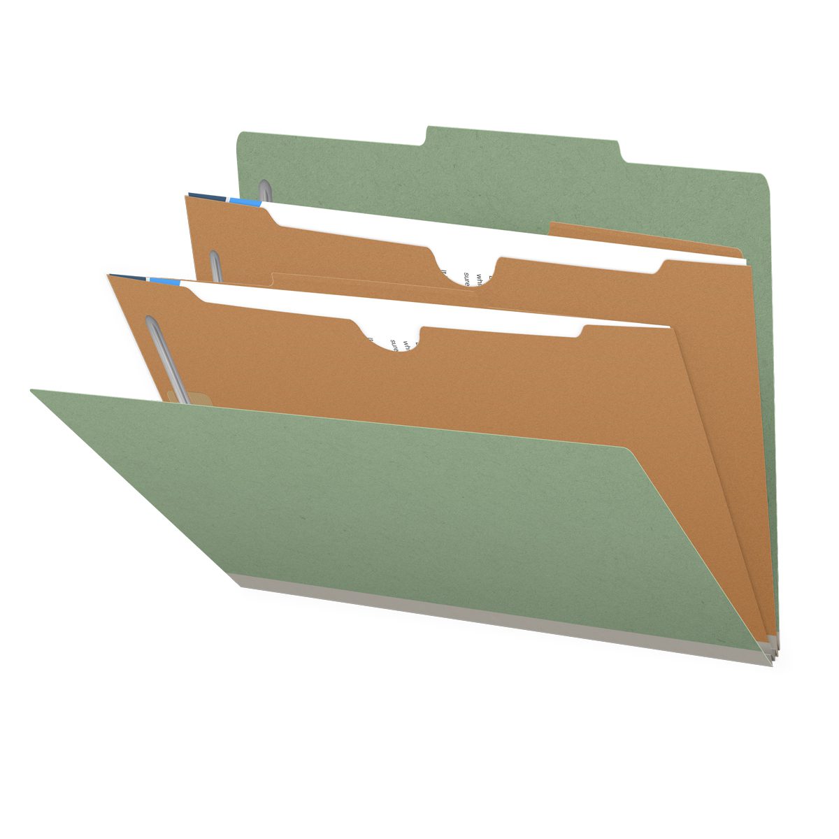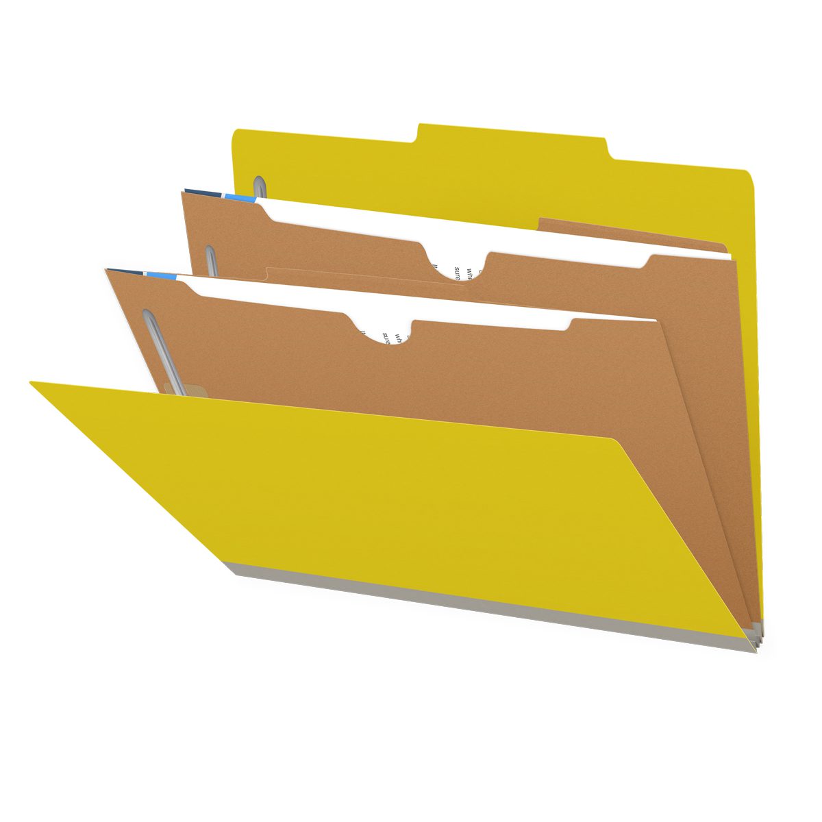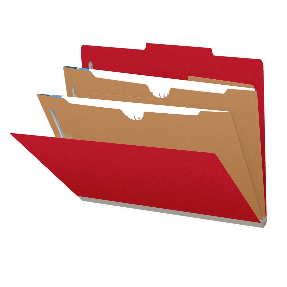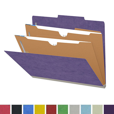 Perfect folder for large, bulky files. This classification file folder has two pocket dividers and six filing sections. Designed to be filed in desks or cabinets with pull-out drawers.