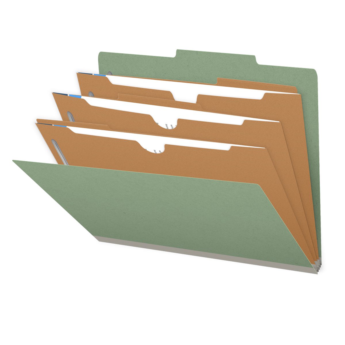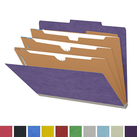 Perfect folder for large, bulky files. This classification file folder has three pocket dividers and eight filing sections. Designed to be filed in desks or cabinets with pull-out drawers.