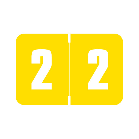 The Digi Color DXNM numeric labels feature a wrap-around yellow background and a white number. The number will be visible on each side of the folder when applied. Each label is 1" H X 1-1/2" W before folding.