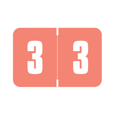 The Digi Color DXNM numeric labels feature a wrap-around pink background and a white number. The number will be visible on each side of the folder when applied. Each label is 1" H X 1-1/2" W before folding.