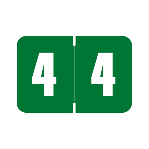 The Digi Color DXNM numeric labels feature a wrap-around green background and a white number. The number will be visible on each side of the folder when applied. Each label is 1" H X 1-1/2" W before folding.