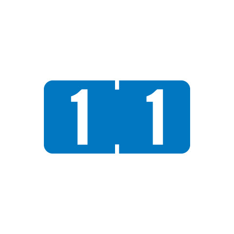 Smead ETSN numeric labels feature a wrap-around blue background with a white number. The number will be visible on each side of the folder when applied. Each label is 1/2"H x 1"W before folding.