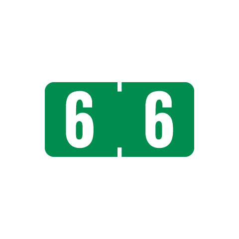 Smead ETSN numeric labels feature a wrap-around green background with a white number. The number will be visible on each side of the folder when applied. Each label is 1/2"H x 1"W before folding.