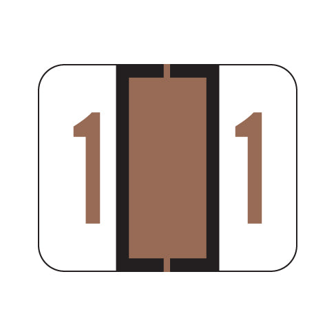 File Doctor numeric labels feature a wrap-around brown bar outlined in black with a brown number on a white background. The number will be visible on each side of the folder when applied. Each label is 1"H x 1-1/4"W before folding.
