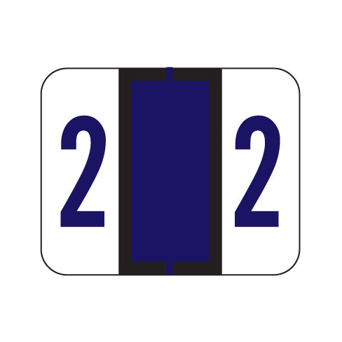 File Doctor numeric labels feature a wrap-around purple bar outlined in black with a purple number on a white background. The number will be visible on each side of the folder when applied. Each label is 1"H x 1-1/4"W before folding.