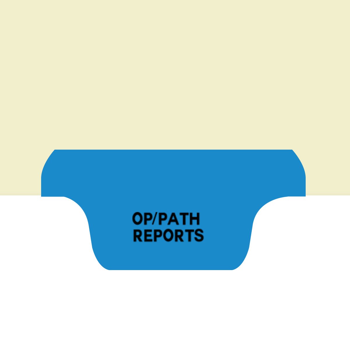 Individual Fileback Divider Tabs, Top Flap, Bottom Tabs, Op/Path Reports, Medium Blue, 1/8th Cut, Pos #3 (Pack of 50)