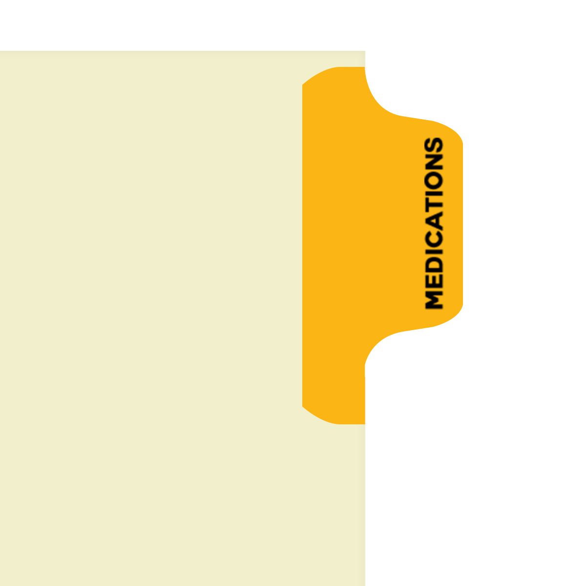 Individual Fileback Divider Tabs, Side Flap, Side Tabs, Medications, Amber, Side Tab 1/8th Cut, Pos #1 (Pack of 50)