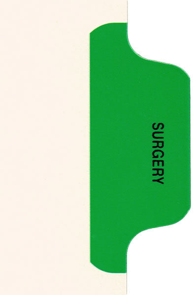 Individual Chart Divider Tabs, Surgery (Med Green), Side Tab 1/8th Cut, Pos #2 (Pack of 50)