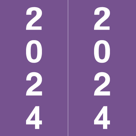 IFC year labels have a wrap-around purple background with a white vertical year. The year will be visible on each side of the folder when applied. Each label is 1-7/8" wide and 1-7/8" high, before folding.