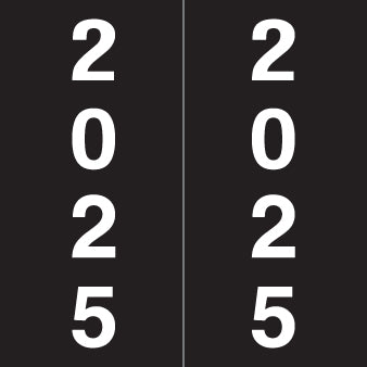 IFC year labels have a wrap-around black background with a white vertical year. The year will be visible on each side of the folder when applied. Each label is 1-7/8" wide and 1-7/8" high, before folding.