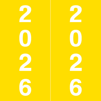 IFC year labels have a wrap-around yellow background with a white vertical year. The year will be visible on each side of the folder when applied. Each label is 1-7/8" wide and 1-7/8" high, before folding.