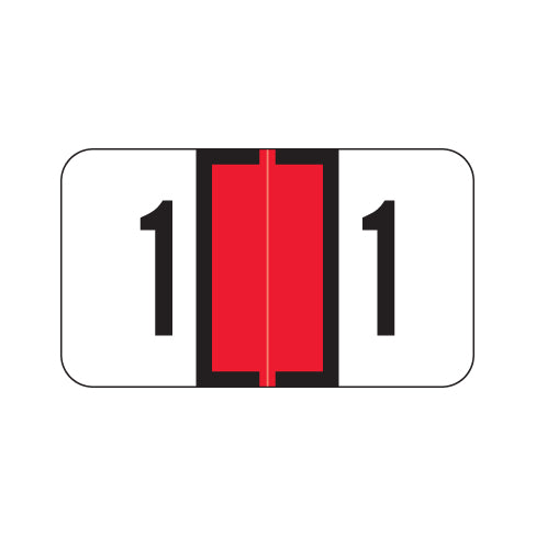 Jeter 0300 numeric labels feature a wrap-around red center bar outlined in black and a black number on a white background. The number will be visible on each side of the folder when applied. Each label is 15/16"H x 1-5/8"W before folding.