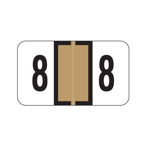 Jeter 0300 numeric labels feature a wrap-around tan center bar outlined in black and a black number on a white background. The number will be visible on each side of the folder when applied. Each label is 15/16"H x 1-5/8"W before folding.