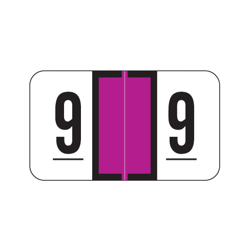 Jeter 0300 numeric labels feature a wrap-around purple center bar outlined in black and a black number on a white background. The number will be visible on each side of the folder when applied. Each label is 15/16"H x 1-5/8"W before folding.