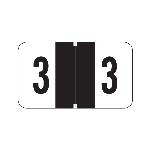 Jeter 2600 numeric labels feature a wrap-around black center bar and a black number on a white background. The number will be visible on each side of the folder when applied. Each label is 15/16"H x 1-5/8"W before folding.