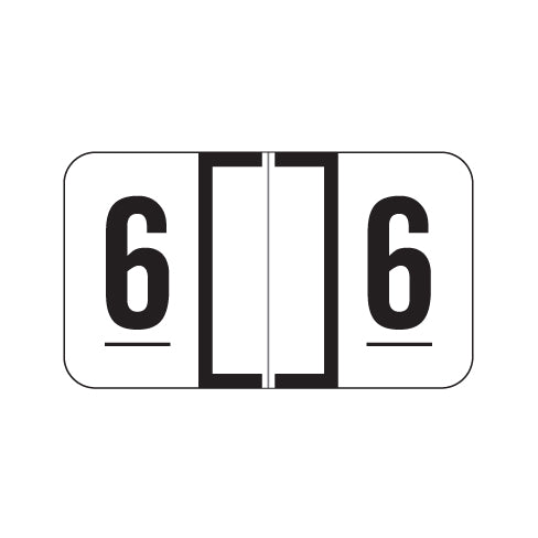 Jeter 2600 numeric labels feature a wrap-around white center bar outlined in black and a black number on a white background. The number will be visible on each side of the folder when applied. Each label is 15/16"H x 1-5/8"W before folding.