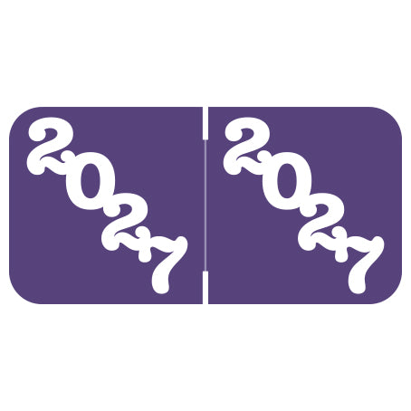 Jeter year labels have a wrap-around purple background with a diagonal year. The year will be visible on each side of the folder when applied. Each label is 3/4" H x 1-1/2" W before folding.