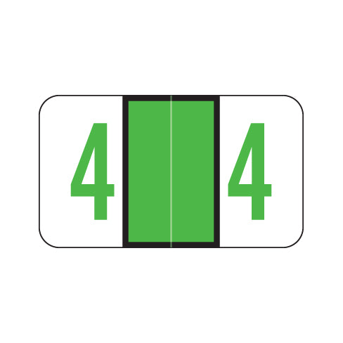Jeter 6100 numeric labels feature a wrap-around green center bar outlined in black and a matching green number on a white background. The number will be visible on each side of the folder when applied. Each label is 15/16"H x 1-5/8"W before folding.