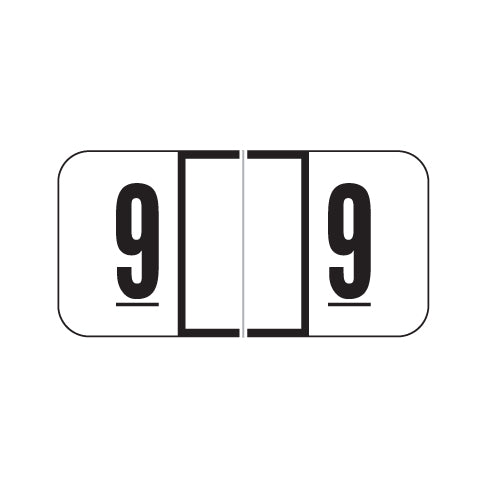 Jeter 3000 numeric labels feature a wrap-around white center bar outlined in black and a black number on a white background. The number will be visible on each side of the folder when applied. Each label is 3/4"H X 1-1/2"W before folding.