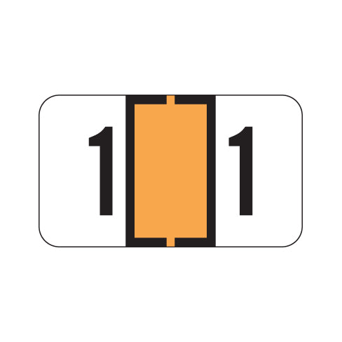 Jeter 7300 numeric labels feature a wrap-around orange bar outlined in black with black numbers on a white background. The number will be visible on each side of the folder when applied. Each label is 15/16" H x 1-5/8" W before folding.