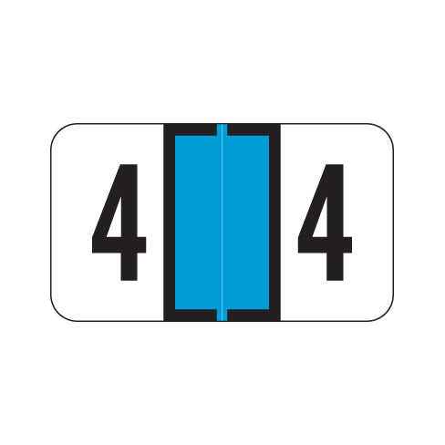 Jeter 7300 numeric labels feature a wrap-around blue bar outlined in black with black numbers on a white background. The number will be visible on each side of the folder when applied. Each label is 15/16" H x 1-5/8" W before folding.
