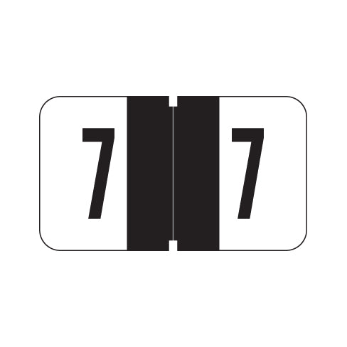 Jeter 7300 numeric labels feature a wrap-around black bar with black numbers on a white background. The number will be visible on each side of the folder when applied. Each label is 15/16" H x 1-5/8" W before folding.