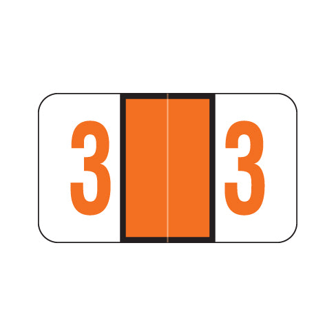 Jeter 6190 numeric labels feature a wrap-around orange center bar outlined in black and a matching orange number on a white background. The number will be visible on each side of the folder when applied. Each label is 15/16"H x 1-5/8"W before folding.
