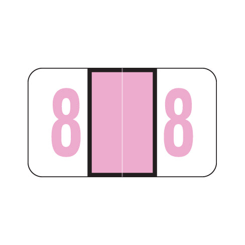 Jeter 6190 numeric labels feature a wrap-around lilac center bar outlined in black and a matching lilac number on a white background. The number will be visible on each side of the folder when applied. Each label is 15/16"H x 1-5/8"W before folding.