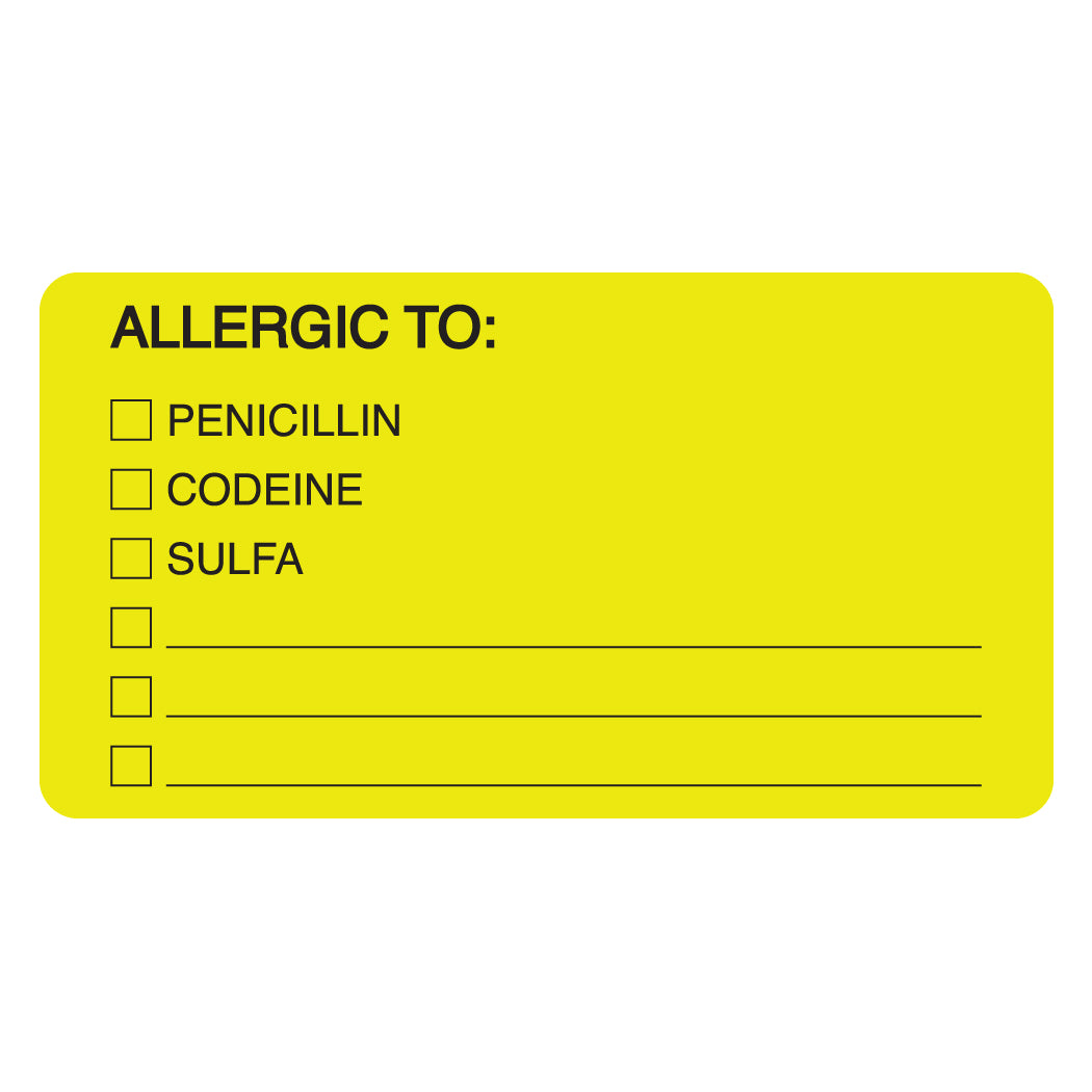 MAP1550 ALLERGIC TO:- Fluorescent Chartreuse 3-1/4" X 1-3/4" (Roll of 250)