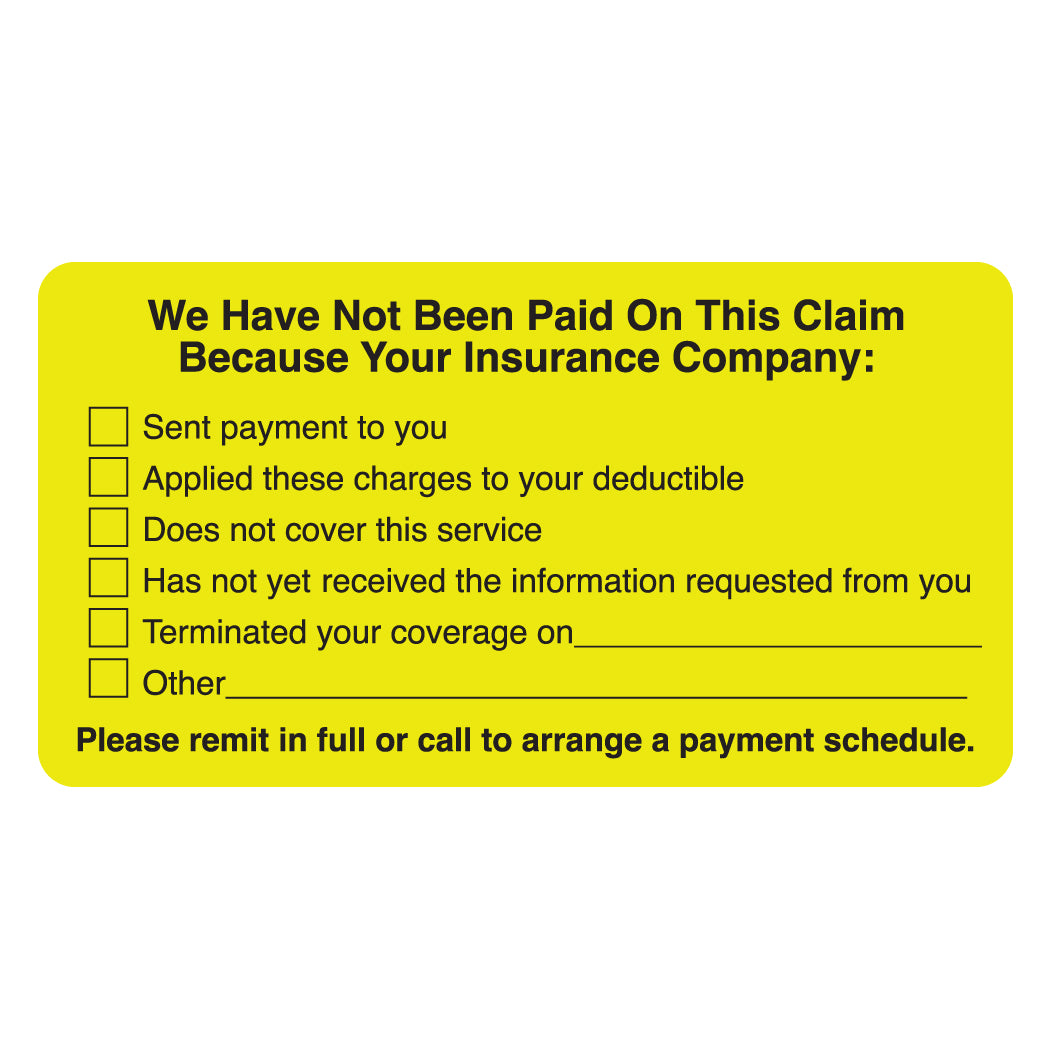 MAP1560 WE HAVE NOT BEEN PAID- Fluorescent Chartreuse 3-1/4" X 1-3/4" (Roll of 250)