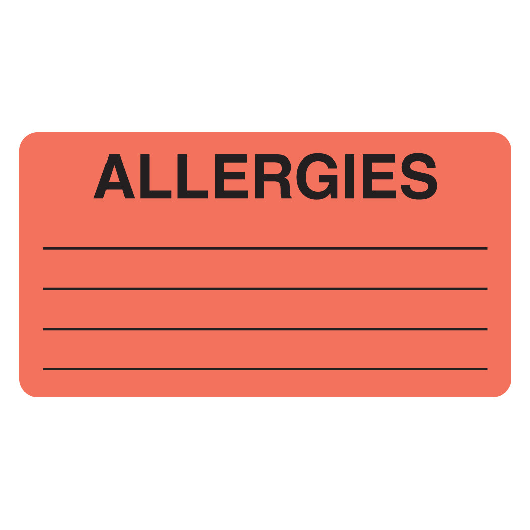 MAP1630 ALLERGIES- Fluorescent Red 3" X 1-1/8" (Roll of 250)