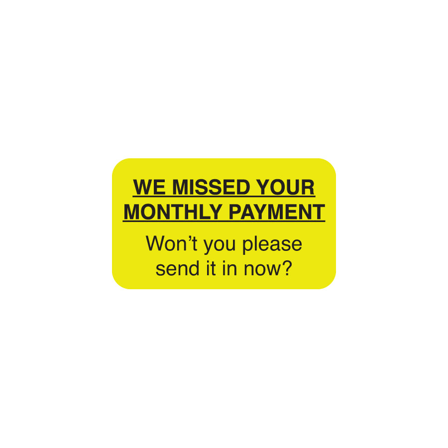 MAP4320 WE MISSED YOUR PAYMENT- Fluorescent Yellow 1-1/2" X 7/8" (Roll of 250)