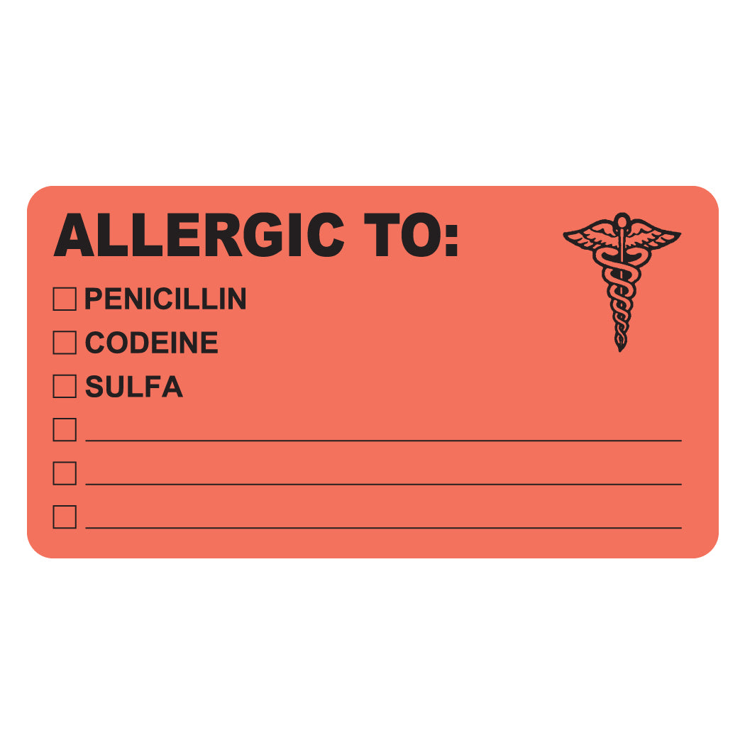 MAP488 ALLERGIC TO:- Fluorescent Red 4" X 2-1/2"- Roll of 100