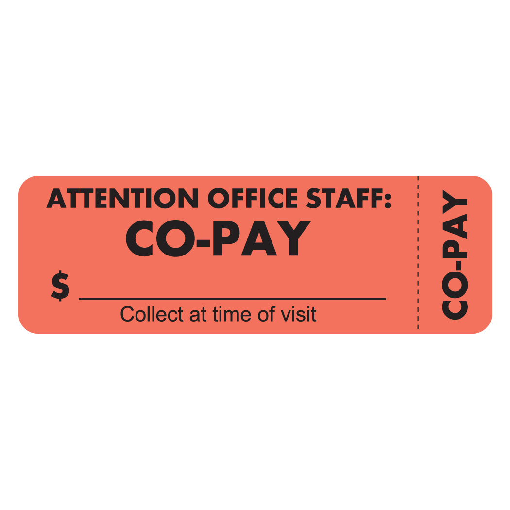 MAP6460 CO-PAY- Fluorescent Red 3" X 1" (Roll of 250)