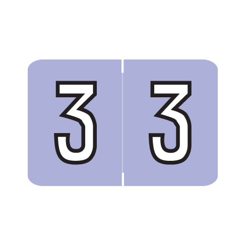 Barkley NCPM numeric labels have a wrap-around lavender background with a white number outlined in black. The number will be visible on each side of the folder when applied. Each label is 1"H x 1-1/2"W before folding.