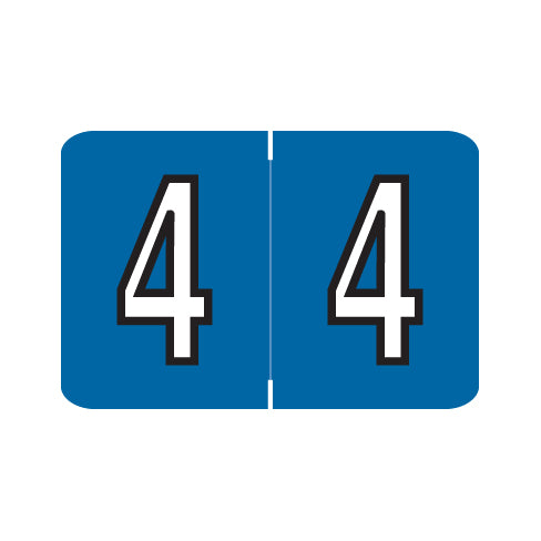 Barkley NCPM numeric labels have a wrap-around dark blue background with a white number outlined in black. The number will be visible on each side of the folder when applied. Each label is 1"H x 1-1/2"W before folding.