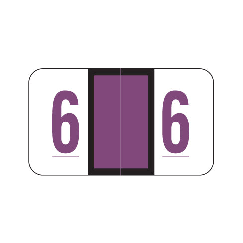POS 3500 numeric labels feature a wrap-around purple bar outlined in black and a purple number on a white background. The number will be visible on each side of the folder when applied. Each label is 15/16"H x 1-5/8"W before folding.