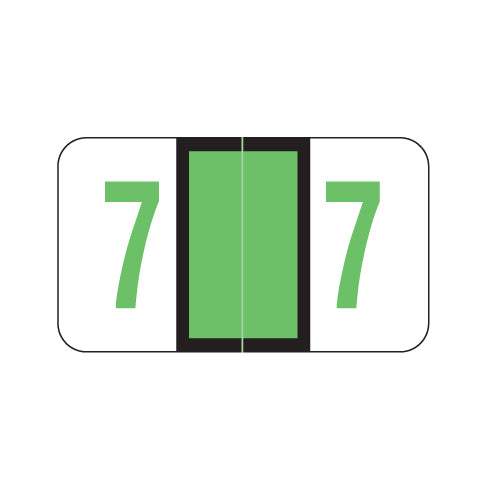 POS 3500 numeric labels feature a wrap-around green bar outlined in black and a green number on a white background. The number will be visible on each side of the folder when applied. Each label is 15/16"H x 1-5/8"W before folding.